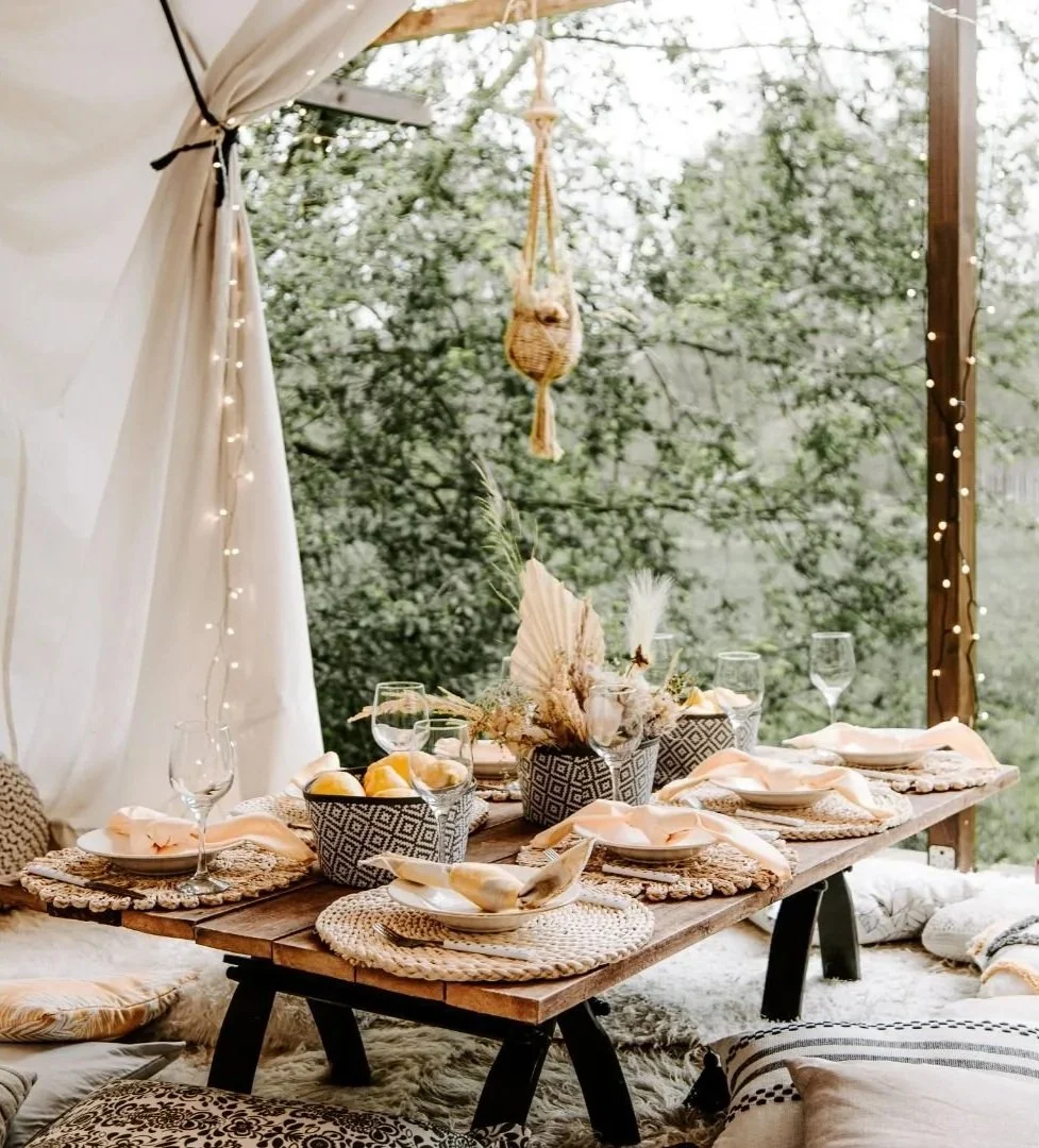 Tipis, Boho-Lounges, Chillout-Areas und, Beauty Lounge für Braut & Bridesquad, perfekt für Fotoshootings, Sommerfeste, Gartenpartys oder Mikro-Events.