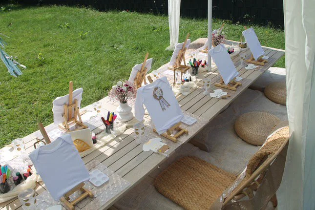 • Stilvolles Picknick-Setup mit Sonnenschirmen